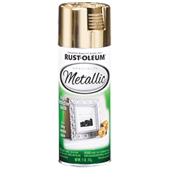 Rust-Oleum® Specialty Metallic Spray provides rich, shiny finish for decorating and accent pieces. Apply to wood, metal, plaster, masonry or unglazed ceramic. Made with real metal leafing flakes.