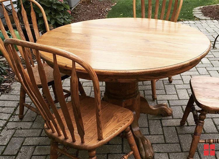 Step 1: Sand the entire table with a sanding block, making sure to remove the existing finish from the area to be stained. With a tack cloth or lint-free cloth, wipe away any sanding residue.